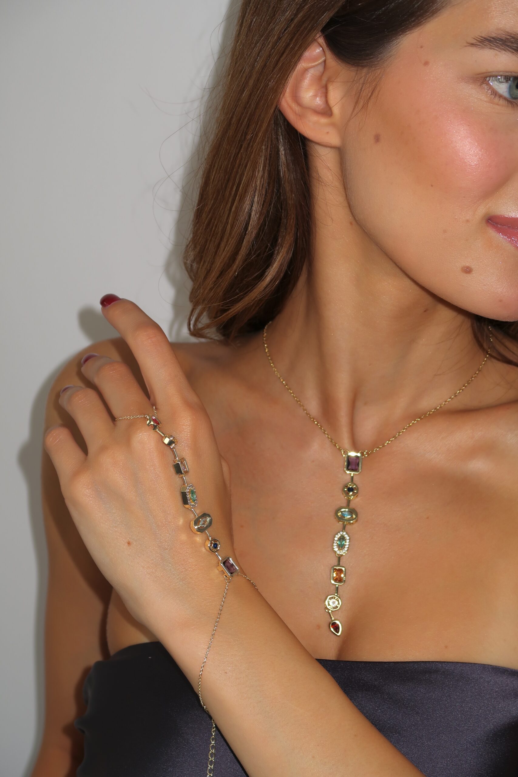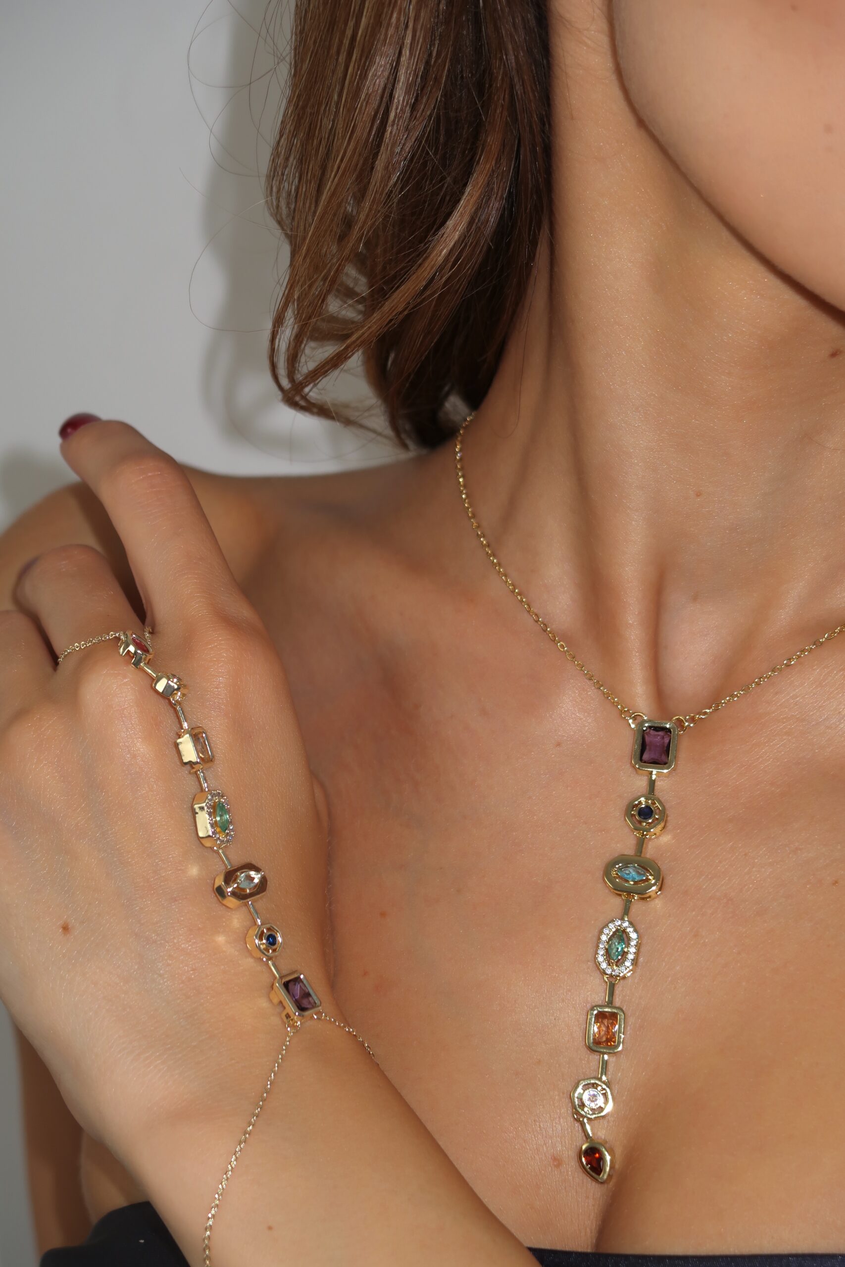 Premium ogrlica i narukvica od nerdjajućeg čelika sa šarenim kristalima