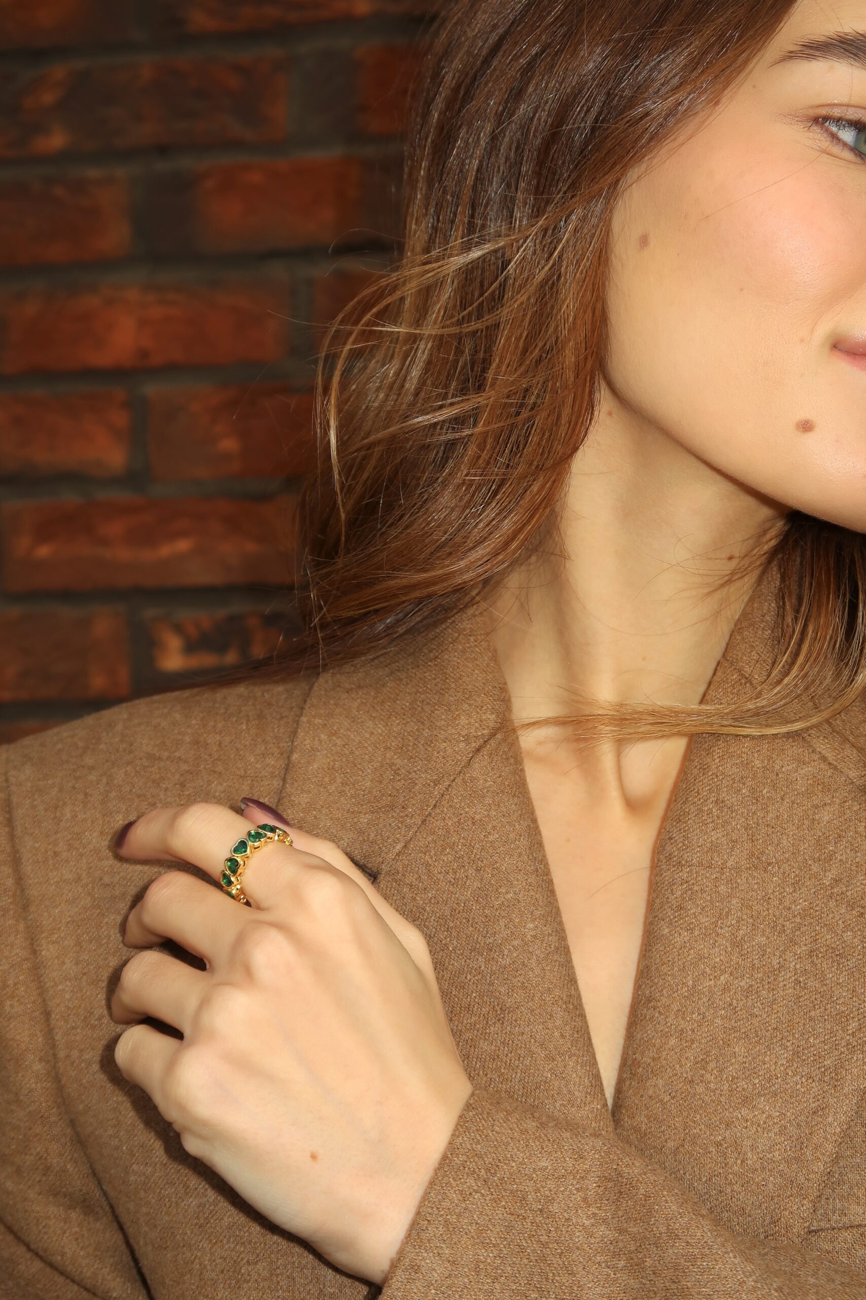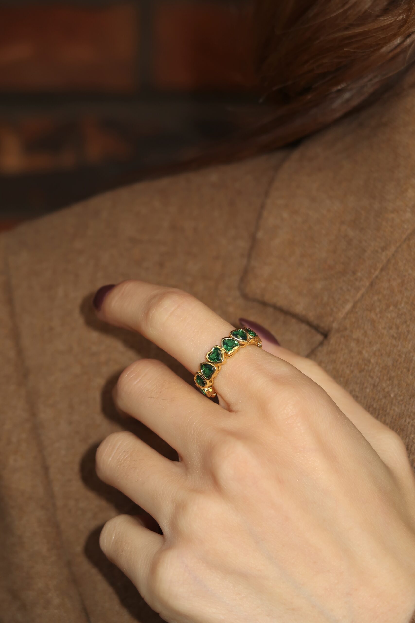 Prsten od nerdjajućeg čelika sa zelenim kristalima u obliku srca